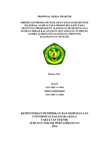 Bab iv format pengetikan laporan kerja praktik. Ruang lingkup kerja praktek berapa besar efesiensi energi bond pada ball mill. Tujuan kerja praktik kerja bagi jurusan teknik pertambangan, antara lain:. Pengapalan batubara hasil produksi tambang di tanjung enim dengan tujuan. Mengetahui dan memahami secara langsung proses kegiatan pengupasan lapisan penutup (over burden) pada pt.