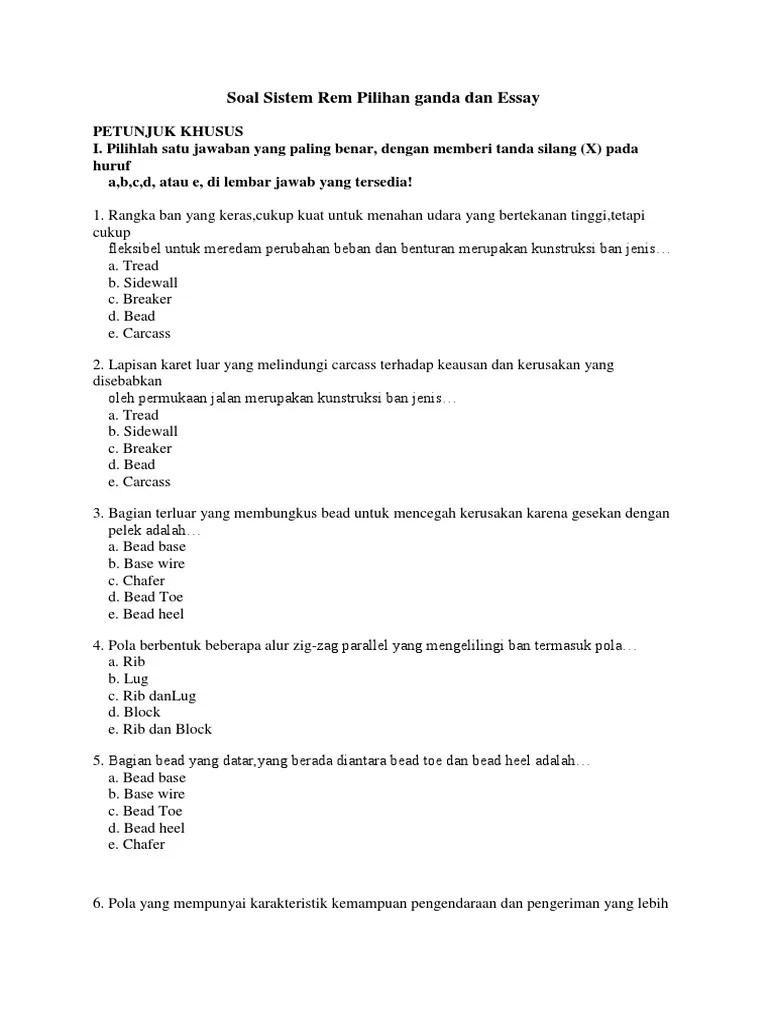 Contoh Soal Pilihan Ganda Tentang Sistem Rem Tkr : Soal Soal Sistem Rem / Portal jurnal upi adalah kumpulan jurnal ilmiah yang terbit di universitas pendidikan indonesia