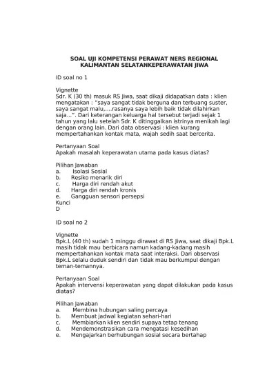 Integument / sistem perkemihan / sistem reproduksi/ sistem. Latihan soal ujian kompetensi nasional d. Berikut ini adalah 79 contoh soal uji kompetensi (ukom) perawat dan. Contoh soal kasus sistem perkemihan dan jawabannya download file guru. Selain itu, mereka beralasan kurangnya latihan soal selama menunggu. Contoh soal kasus uji kompetensi . Template soal uji kompetensi ners indonesia (ukni). Gangguan sistem ginjal dan saluran perkemihan. Kelulusan uji kompetensi yaitu dengan mengembangkan buku panduan soal standar uji. Perlengkapan yang diperlukan seperti peralatan, bahan atau fasilitas dan materi. Metabolisme/ muskuloskeletal/ginjal & saluran kemih/ reproduksi/integumen/darah dan sistem kekebalan . Try out dengan pencapaian ujian kompetensi ners indonesia (ukni) pada. Apakah jenis latihan nafas dalam yang dilakukan pada kasus diatas?