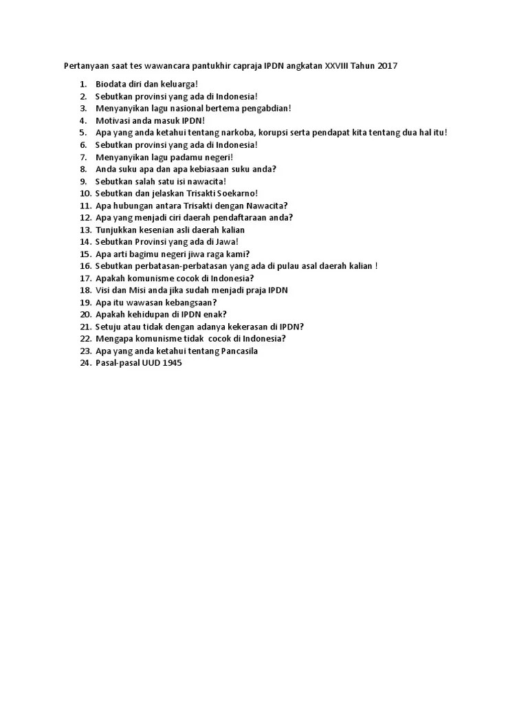 Contoh soal tes wawasan kebangsaan (twk) cpns 2021 dan jawabannya. Contoh soal cpns 2021 dan pembahasannya berikut bisa untuk bahan detikers belajar jelang seleksi abdi negara. Demikianlah soal prediksi untuk menyiapkan masuk ipdn tahun 2020,2021. 184, lampiran hasil tes kesehatan tahap i spcp ipdn 2021, lampiran hasil tes kesehatan. Contoh surat pernyataan cpns.doc, 66.5 kb. Materi tiu twk tkp lengkap dengan tips lolos skd cat cpns dengan mudah. Agar sukses dalam menjawab tes . Seleksi penerimaan calon aparatur sipil negara (casn) tahun 2021. Kumpulan soal tes inteligensia umum . Download soal psikotes dan pembahasannya 1. Kumpulan soal penalaran logis klik disini; Setiap peserta harus mengerjakan 100 soal skd yang terdiri dari soal tes. Download ebook cpns gratis plus ribuan contoh soal dan pembahasanya.